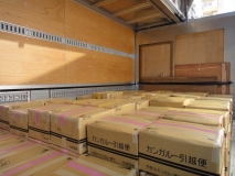 皆様が作ってくださった絵本は、2月4日に全国のボランティアの方々が製作した東南アジアへ贈る絵本とともに、東京都新宿区の「公益社団法人 シャンティ国際ボランティア会(以下「シャンティ」と表示)」の倉庫から、4トントラック2台に、カンボジア、ミャンマー(ビルマ)難民キャンプ、ラオスと国別に積み込まれ、東京港大井ふ頭にむかいました。