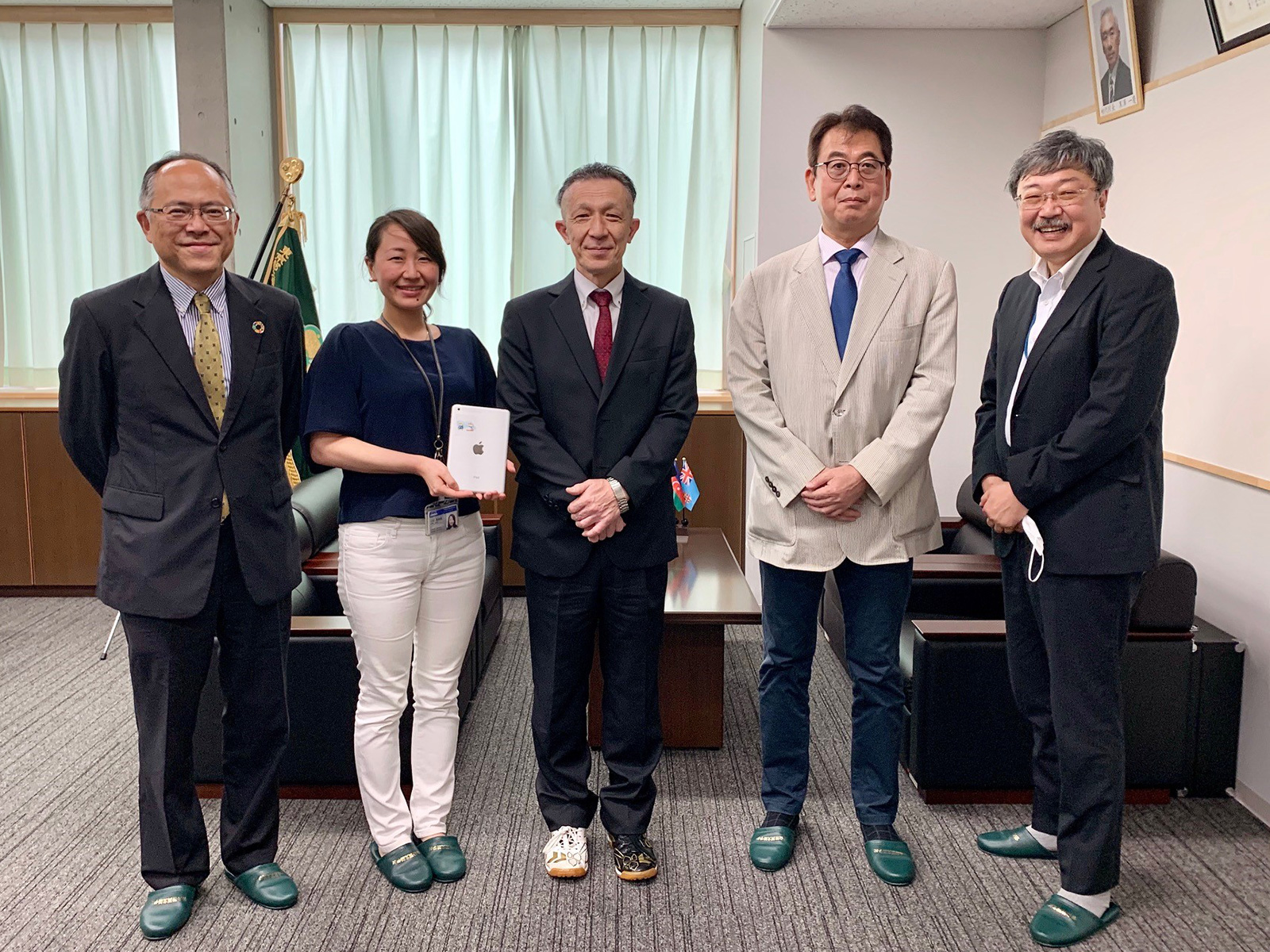 本日は、事務所から徒歩5分のご近所、東京都立青山特別支援学校に「わいわい文庫」を収納したタブレット端末を寄贈しました。