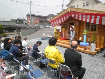 5月19日、好天の日曜日。ログハウス作りの図書館の前で行われた「落成式」は、大船渡市教育委員会 金野教育次長様をはじめ、ログハウスキットや備品、図書を寄贈した全国の支援者の方々、建設に尽力された地元有志の方々等、総勢50名ほどが出席され、温かな思いやりと復興へ向けた熱意にあふれる集いでした。
