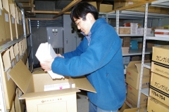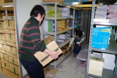 東北はもとより全国から集まった翻訳絵本約1万5千冊が集結した倉庫で、シャンティの職員さんの指示のもと、国別、タイトル別に絵本をきちんとダンボールに詰め、重さを量り、表示を書き、行き先別に積み上げました。